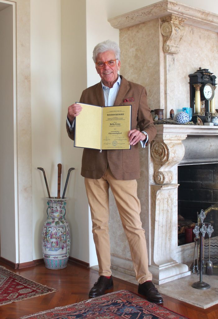 Der bekannte und beliebte ungarische Schauspieler, Regisseur, Autor und Moderator Béla Erny wurde in Budapest am 24.11.2024 zum ordentlichen Ehrenmitglied der EKW ernannt. Die Ehrung nahm die Direktorin der EKW Österreich Karina Willam vor und wünschte im Namen des Präsidiums der EKW dem Ausgezeichneten weiterhin viel Erfolg und Schaffenskraft im beruflichen