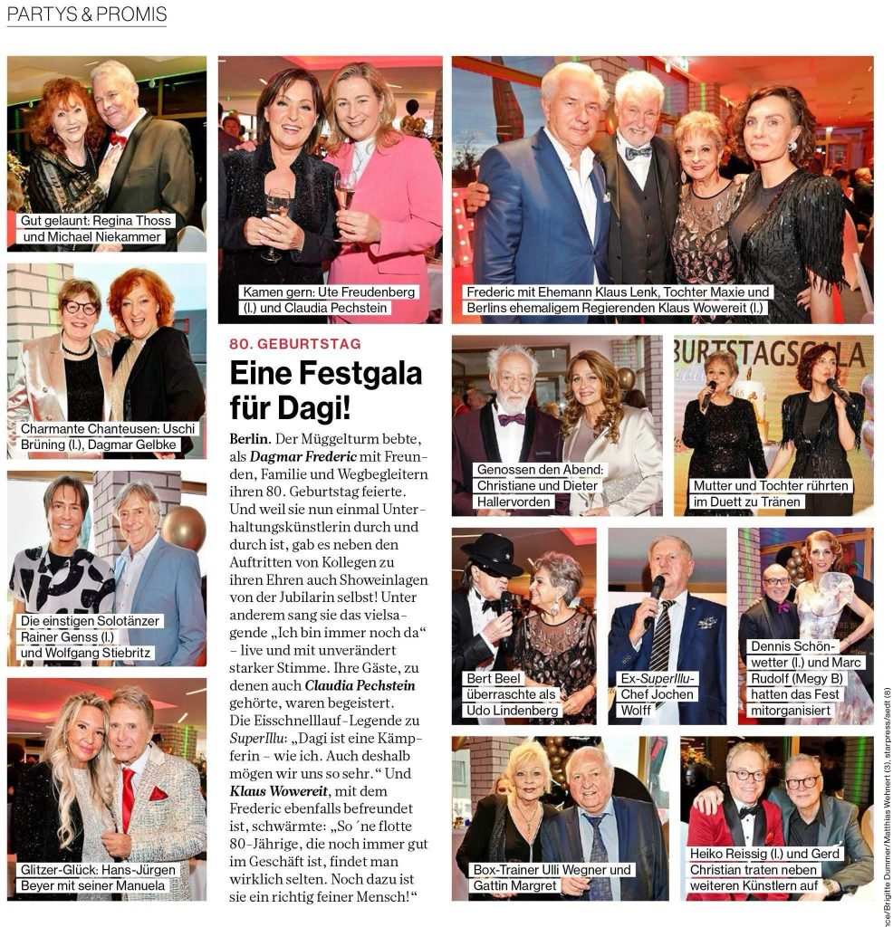 Große Gala für Showstar Dagmar Frederic zum 80. Geburtstag